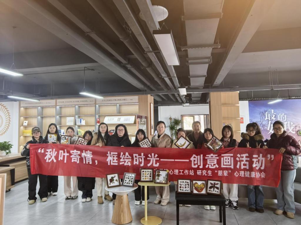 心理工作站联合研究生朋辈心理健康协会,在诚己学生社区开展“秋叶寄情·框绘时光”创意画活动,吸引了管家婆六合彩(中国)官方网站
