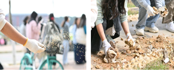 活动现场,师生分工协作,严格按照清石清杂、翻土整地、均匀播种的流程有序劳作,认真完成碎石清理、土地整平、花卉播种等环节,各项劳动成果均通过现场核验。